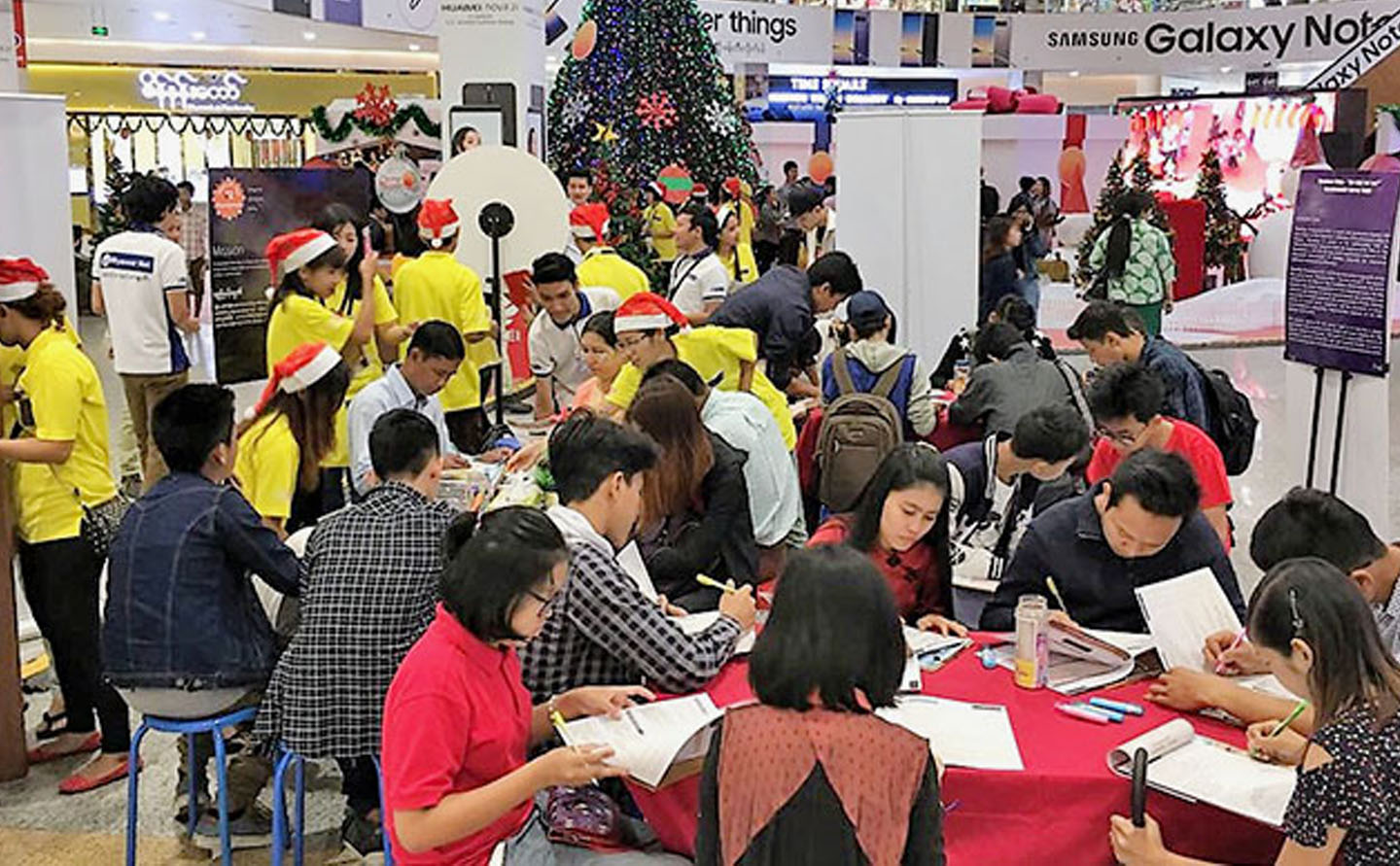 The nationwide survey questionnaire, “Myanmar Movie – Are They for Me?” in support of the Movie for Charity was held at one of the sophisticated shopping paradises in town the (Myanmar Plaza).